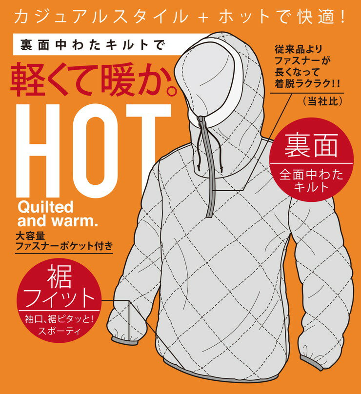 ■軽量であったか、着心地の良い防寒ジャンパー水や汚れを弾く撥水加工を施したオールキルトヤッケ(総キルト加工)。