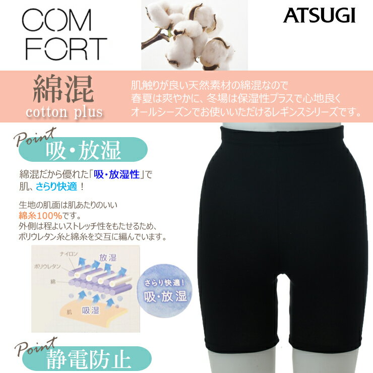 レギンス レディース ATSUGI COMFORT 綿混3分丈レギンス(SPT1782)スパッツ 3分丈 スパッツ レギンス 3分丈 コンフォート 綿混 綿 レギンス 無地 ヨガ フィットネス(02569)
