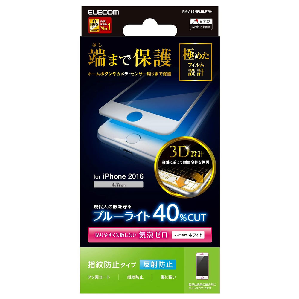 iPhone8 / iPhone7 /iPhoneSE 第2世代 SE2 フィルム アイフォン7 液晶保護 フルカバーフィルム 防指紋 反射防止 ブルーライトカット ホワイト PM-A16MFLBLRWH / ELECOM エレコム 【送料無料】